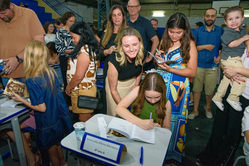 Em um ambiente de reconhecimento e emoção, nossos alunos viveram a experiência única de autografar suas próprias produções, compartilhando suas histórias, ideias e sentimentos com familiares, amigos e toda a comunidade escolar que se fez presente para prestigiar esse momento tão significativo.