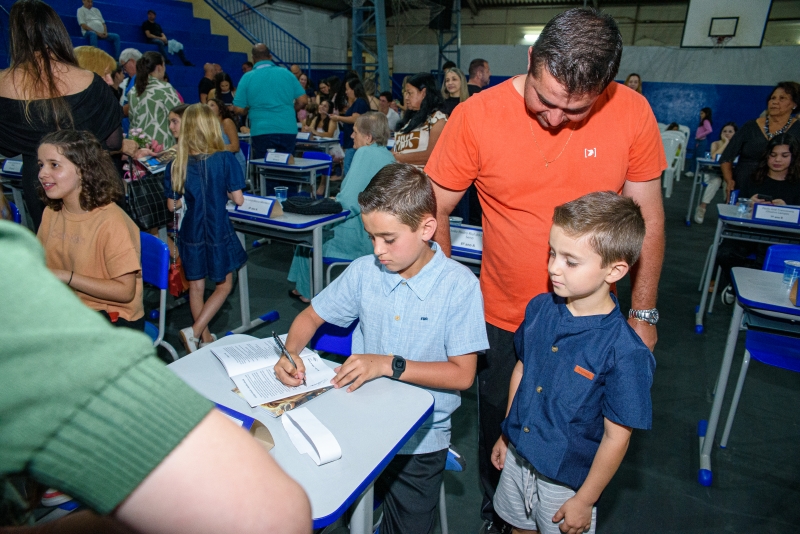 Parabenizamos todos os alunos-autores, professores envolvidos e famílias que apoiam e acreditam no poder da educação. Que esta noite inspire ainda mais sonhos, palavras e futuros escritores.